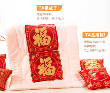 以全家福靠垫被为礼,多种用途满足你客户的生活需求,传统设计元素表达对幸福生活的祝福,且产品性价比高、实用性强、品质上佳、客户喜欢,不管对送礼者还是对受礼者而言,这都是一款年底礼品的佳品。