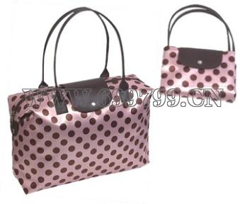 产品说明:面料为涤纶提花,手把为PVC皮革,可在皮盖上面烫印logo或布兜上丝印。