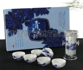 产品描述:1、高档青花瓷 2、茶具、礼盒均可印logo