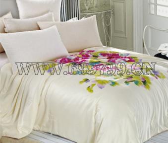 面料采用仿真丝大提花面料,华丽舒适。填充物为50%蚕丝,50%木棉丝。蚕丝纤维丝质细腻、柔软,具有透气、排湿的优异特性。纯蚕丝97%以上由动物蛋白所组成,含有人体必需的18种氨基酸。其中,丝氨酸有滋养皮肤、防止皮肤老化等作用。