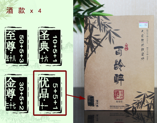• “健康”——李时珍《本草纲目》中就记载:竹子可“凉心经,益元气,除热缓脾,养血清爽”。竹子在成长过程中会自然流露出“竹沥”,竹沥中含有丰富的维生素、微量元素、蛋白质、氨基酸、烟酸、偏硅酸、SOD、竹黄酮等人体必需的营养物质。这些物质具有抗氧化、抗衰老、抗辐射、免疫调节等多重保健作用。李时珍更是将竹子称之为“炎家之圣剂,大热者仙品”。可见竹子拥有着非凡的保健作用。据现代科学研究发现,竹衣内含有大量的硒元素,此元素具有一定的抗癌作用。百龄醉活竹酒就是把古法酿制原酒种在具有这些营养成分的活竹体内经“窖外窖”复式发酵而成。饮之可舒筋活血、清热去闷、健康养颜、延年益寿,让人仿佛走进深山竹林,感受大自然的清新。