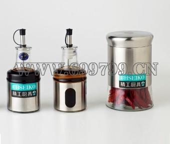产品说明:中号储物罐600 8.5*15.5cm 中号油瓶:180*2