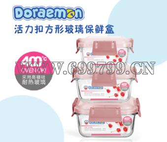 【产品名称】:尚盛哆啦A梦 活力扣方形玻璃保鲜盒(三件套)