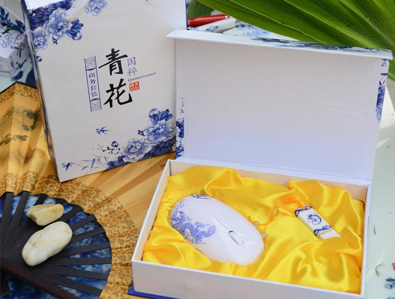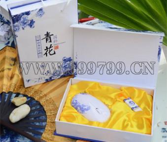 【品名】:金泥坊青花鼠标+青花瓷U盘两件套
