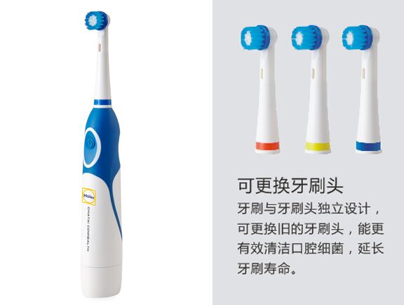 3.可换刷头,不同色环设计,方便家庭公用手柄