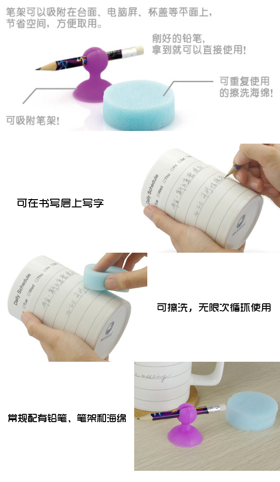 【产品提醒】:MUSKISS记事杯,只能用铅笔涂写,铅笔涂写的字迹可用沾水的海绵擦拭,也可用橡皮擦擦洗。此产品适用于微波炉、洗碗机、消毒柜等。