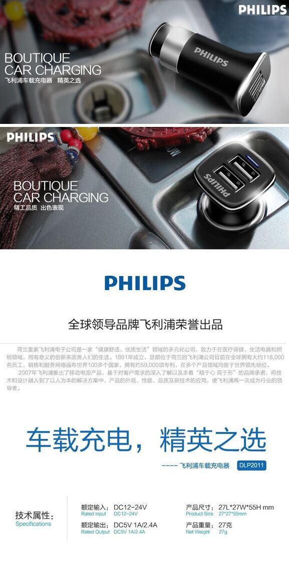 【产品名称】:唯雅车载充电器-飞利浦系列