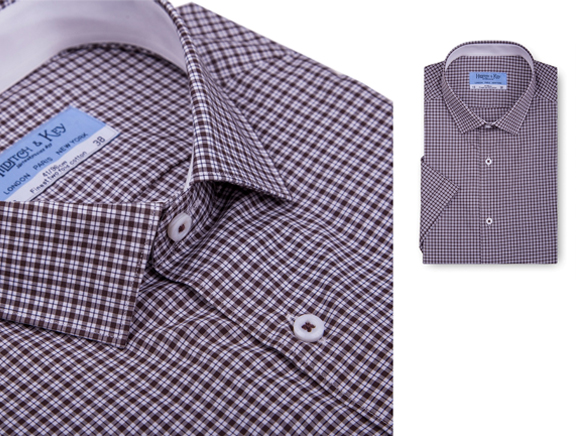 100%长绒棉,咖色小细格,经典小方领,更显儒雅庄重。