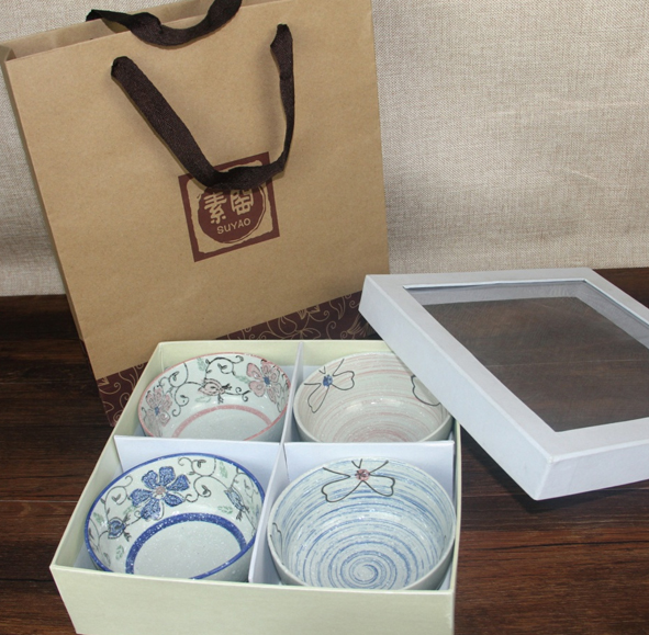 品名:雪花釉四碗套装(蝴蝶花)-尚之木系列