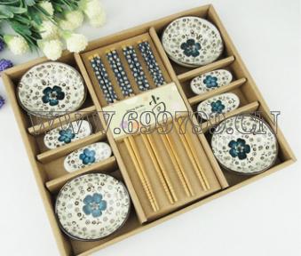 品名:十二件套碟筷套装—樱花漫舞-尚之木系列