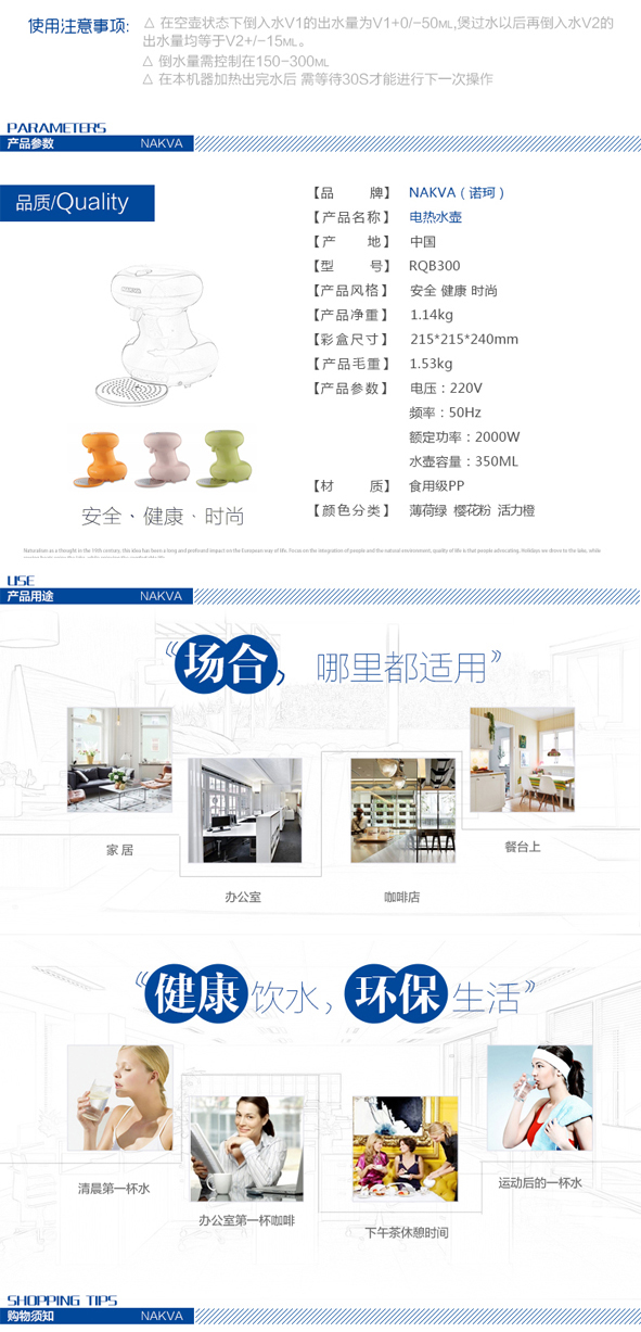 倒入水量需控制在150-300ml之间。出水规格为:在空壶状态下倒入水V1的出水量为V1 +0/-50ml,煲过水以后再倒入水V2的出水量均等于V2 +/-15ml,在出完水后需等待30s才能进行下一次操作。