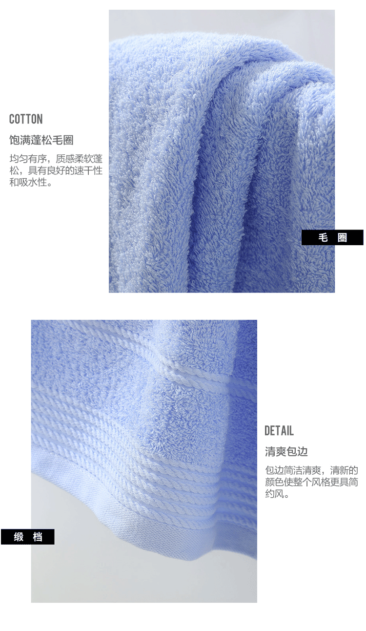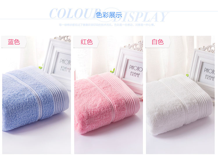 型号:LY2118 材质:纯棉 尺寸:70 × 140cm 392g 颜色:兰、红、紫、白、绿、驼色 组合:单条