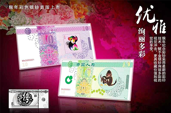 品名:猴年彩色银钞-和韵