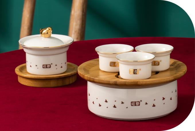 1、高温制作:历经1300度高温烧制, 2、自主设计理念搭配搭配全新的瓷器品种。 3、手工描金,具备更高的艺术价值。 4、搭配高端橡木,茶盘自带小鸟形象滤水设计,使用方便。 5、壶盖采用金属小鸟形象,创新的设计感结合寓意美好的题材