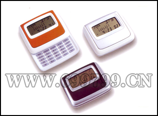 特点:年历、月历、时间显示;12小时或24小时制式选择;定时闹铃;小于100小时倒计时;世界16个城市现在时查询和夏令时设置;八位数四则运算和百分比计算…… 颜色:银、黑、白银、白橙