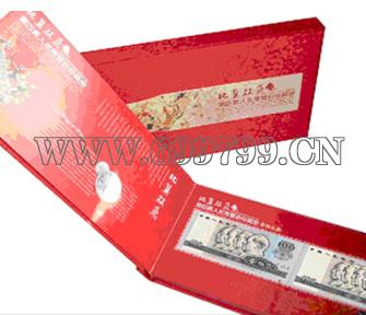 装帧册内装帧第四套人民币,其中每张券别对开装帧,采用双同号(钞票2个尾号相同),寓意“比翼双飞”。设计充分体现中国传统的含蓄、古典及喜庆之美,让珍藏册脱颖而出。