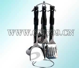 产品特点:选用高品质不锈钢料,汤勺,漏勺,饭勺,钢铲,煎铲,肉叉及不锈钢架,高档实用。