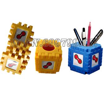 此产品由六个面组成,五面可放置照片;取任意三片或者三片以上就可以组合起来一个精美的笔筒,也可以组装成屏风、城墙、屋子等造型;有助于青少年儿童智力的开发,是一款极佳的实用性广告促销礼品。