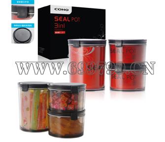 产品特点:主体采用环保AS原料,独特翻盖式100%密封盖不渗漏,隔绝所有外部空气,可以长期保持内置食品的新鲜度;
