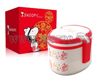 产品说明:史努比双层椭圆饭盒 :100%食品级原料生产,环保安全;双耳密乐扣,带活动提手,方便携带,可用于微波加