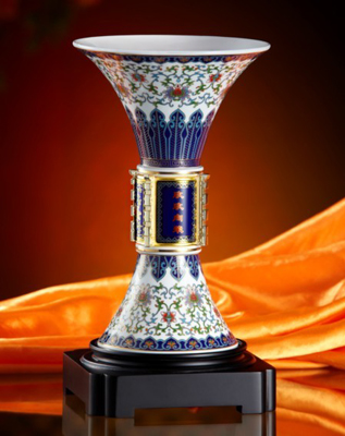 编 号:3.99M.340M0001A 名 称:欣欣向荣(景泰蓝樽) 规 格:162*162*300MM 描 述: 樽是传统礼器之一,是身份和地位的象征。骨瓷景泰蓝樽,在保持樽大气、尊贵的基础上,注入积极向上、奋发有为的文化精神,让其更具思想性、时代性,有励志功效,更有观赏美感。金属结合陶瓷,展现一种工艺之美,增加了产品的文化附加值。可作馈赠、收藏、奖杯之用。