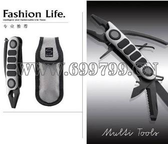 产品特点:多功能工具组合,采用高品质不锈钢锻打而成,表面氧化处理,主体发黑工艺成时尚亮点。集钳子、小刀、锯子、开瓶启、十字批等功能于一体。