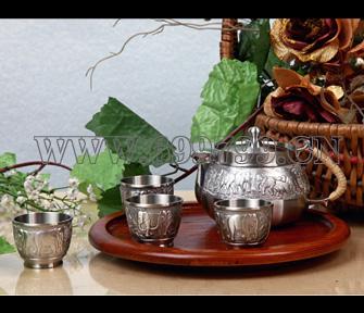 产品名称:唯雅木盘四杯茶具锡器套装商务纪念品
