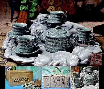 本品结合优秀工艺美术师的技艺,把哥窑艺术融入生活,纯手工制作出独特的精美茶具,它以釉色及釉面开片取胜,裂纹无意而自然,可谓天工造就,符合自然朴实、古色古香的审美情趣,制作之巧令人赞叹