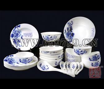 产品名称:唯雅青花骨瓷餐具 ·富贵牡丹餐具套装商务纪念品