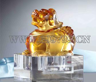 1. 采用琉璃压型工艺制作的貔貅经典,形象优美逼真,线条立体感极强,色彩晶莹通透,气势昂然。
