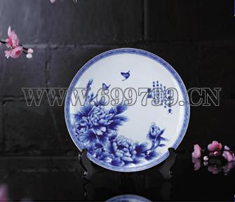 产品名称:唯雅花开富贵青花10寸圆盘 瓷器类时尚工艺品 颐和源系列