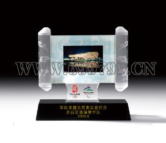 唯雅礼业为军队支援北京奥运会纪念总后交通保障中队专业定制的水晶