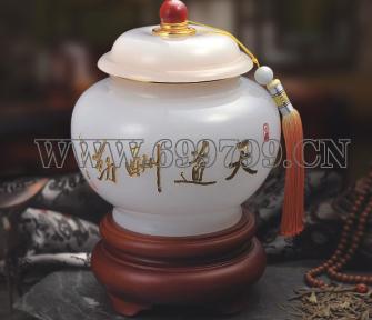 产品名称:唯雅天道酬勤茶叶罐玉石工艺品 唯雅旭鑫系列