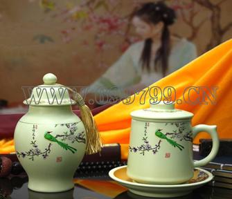 产品名称:唯雅鸟语花香 君子杯+将军茶叶罐 工艺品套装 商务纪念品 老夫子系列