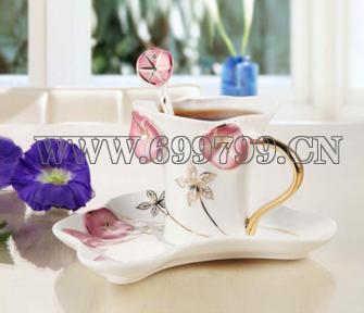 产品简介:一杯一碟一匙 颜色渐变明显 色彩光泽亮丽 纯金描线 质感平滑有立体感 包装严实