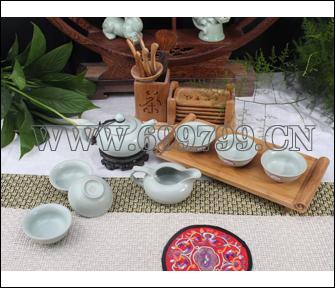 规格尺寸 :1壶1海6杯 工艺:汝窑天青