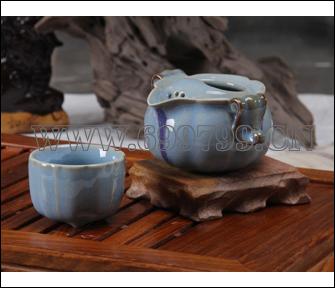 规格尺寸 :一壶一杯 工艺:钧窑(蓝钧