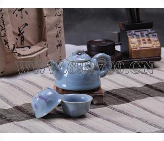 规格尺寸 :一壶一杯旅行组合 工艺:钧窑(蓝钧)