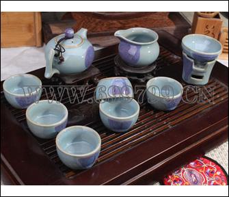 规格尺寸 :1壶1海6杯1风炉过滤 工艺:窑变蓝钧
