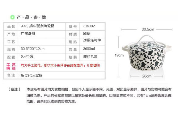 【产品名称】:顺祥厨康9.4寸巧妇锅(奶牛斑点)