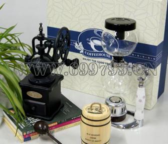 产品简介 : 唯雅 精装龙头花斗三人份虹吸礼盒  适用于家居礼品 ; 精工龙头花斗三人份虹吸壶一套+骨瓷杯碟两套+花梨木磨豆机一台+豆桶一个+量勺一把+硬质包装盒(含手提袋)可做LOGO
