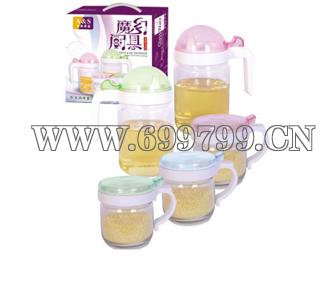 规格尺寸 : 容量:580ml*2+300ml*3 ; 规格:高:16.5CM 口径:7.5CM ; 材质:玻璃+pp+ps
