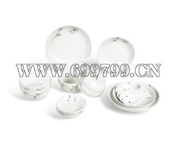规格尺寸 :4.5寸护边碗: 4个 小汤匙:4个 汉碟 :4个 6寸饭盘 :2个 7寸菜盘:2个