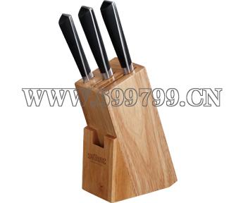 配置:切菜刀、三德刀、 水果刀、开槽碳化竹抑菌刀架
