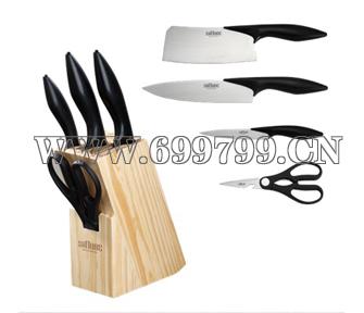 配置:切菜刀、万用刀、水果刀、厨房剪、开槽碳化竹抑菌刀架
