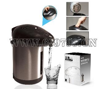 产品简介:优质不锈钢拉丝表面,美观大方高档次。采用全球先进的极速发热芯,快速烧开,真正100℃沸腾,更有强力再沸腾,更好去除氯,滴滴纯净,保障您的饮水健康。水沸腾后自动转保温,当温度低于75℃时,自动加热,让您一整天都有纯净的热水喝,在断电的情况下,良好的密封性能和保温性能,持续5个小时后不低于75℃的水温。优质硅胶密封气压出水,带童锁,更安全。特大透明水位视窗,随时掌握水量。360度旋转底座,可不同角度出水。可拆卸瓶盖,清洗更方便。三重防干烧保护,安全可靠