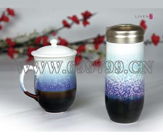 规格尺寸:雪晶釉月季高杯+雪晶釉随身杯