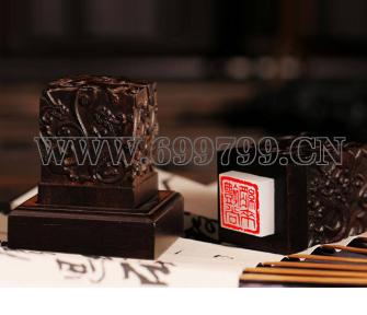 产品名称:唯雅黑檀木浮雕九螭龙嵌白玉艺术印玺 博厚系类
