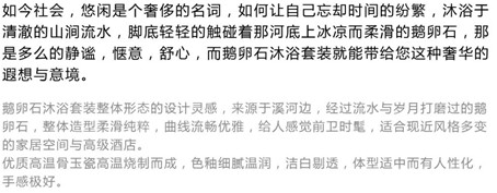 感谢您礼品定制选择中国礼品定制网的最佳供应商---唯雅礼品公司,生产的家居礼品鹅卵石沐浴四件套产品的礼品厂家。作为专业的礼品定制厂家,我们可按您的要求在鹅卵石沐浴四件套产品上个性设计 印制LOGO和相关宣传文字及图案,本产品可适用于家居礼品 开业礼品 庆典礼品 展会礼品等活动之用。