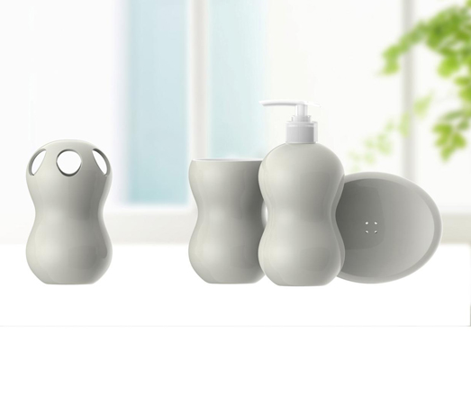 规格尺寸:材质:骨瓷 规格:漱口杯:300ML*1,牙刷杯*1, 沐浴瓶:350ML,香皂盒*1 颜色:茶白色